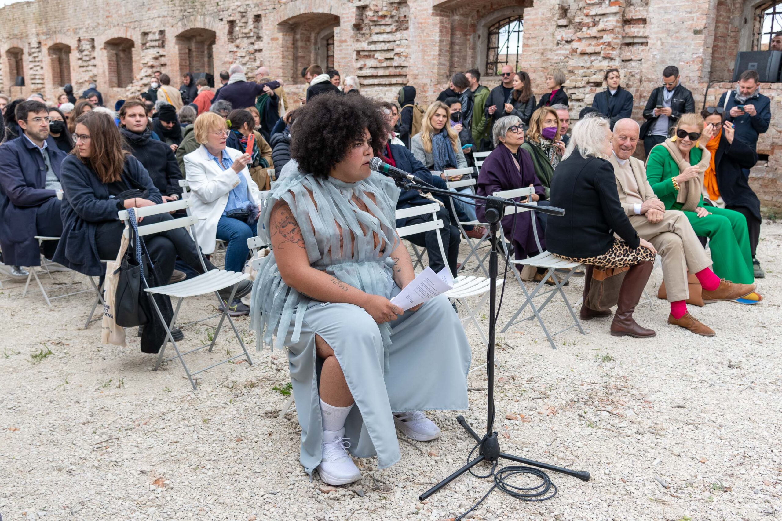 Nel 2022 la performance in the the tired watering di Jota Mombaça, si è confrontata con le qualità dinamiche dell’acqua, con le inquietudini legate alla crisi climatica e ambientale, con la consapevolezza dell’imminenza di una possibile catastrofe planetaria.
